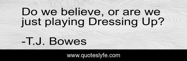 This page presents the quote "Do we believe, or are we just playing Dressing Up?". Author of this quote is T.J. Bowes. .