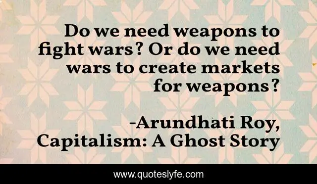 "Arundhati Roy, Capitalism: A Ghost Story Quotes." Quoteslyfe.com, 2025. Fri. 05 Dec. 2025. <https://www.quoteslyfe.com/quote/Do-we-need-weapons-to-fight-wars-204914>.