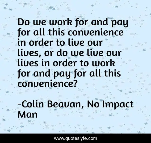"Colin Beavan, No Impact Man Quotes." Quoteslyfe.com, 2025. Mon. 08 Dec. 2025. <https://www.quoteslyfe.com/quote/Do-we-work-for-and-pay-for-125083>.