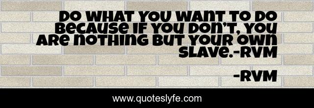 This page presents the quote "Do what YOU want to do because if you don’t, you are nothing but your own slave.-RVM". Author of this quote is RVM. This quote is about confidence, positive, motivational, optimistic, inspirational, enthusiasm, inspiration,.