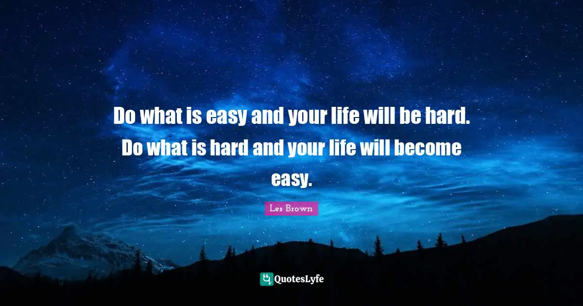 "Les Brown Quotes." Quoteslyfe.com, 2025. Sun. 28 Dec. 2025. <https://www.quoteslyfe.com/quote/Do-what-is-easy-and-your-life-815591>.