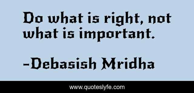 This page presents the quote "Do what is right, not what is important.". Author of this quote is Debasish Mridha. This quote is about life, love, knowledge, inspirational, intelligence, philosophy, wisdom, quotes, affection,.