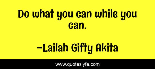 "Lailah Gifty Akita Quotes." Quoteslyfe.com, 2025. Sun. 07 Dec. 2025. <https://www.quoteslyfe.com/quote/Do-what-you-can-while-you-can-29314>.