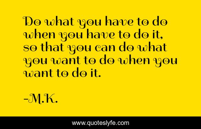 This page presents the quote "Do what you have to do when you have to do it, so that you can do what you want to do when you want to do it.". Author of this quote is M.K.. .