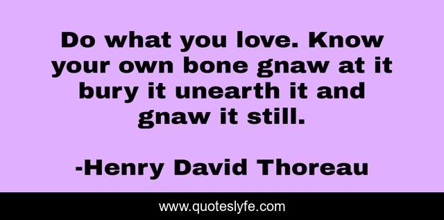 This page presents the quote "Do what you love. Know your own bone gnaw at it bury it unearth it and gnaw it still.". Author of this quote is Henry David Thoreau. .