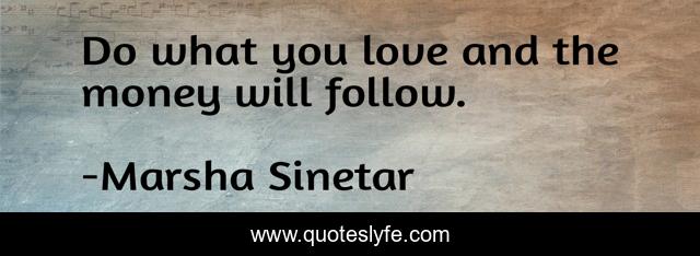 This page presents the quote "Do what you love and the money will follow.". Author of this quote is Marsha Sinetar. This quote is about do what you love, love, affection,.