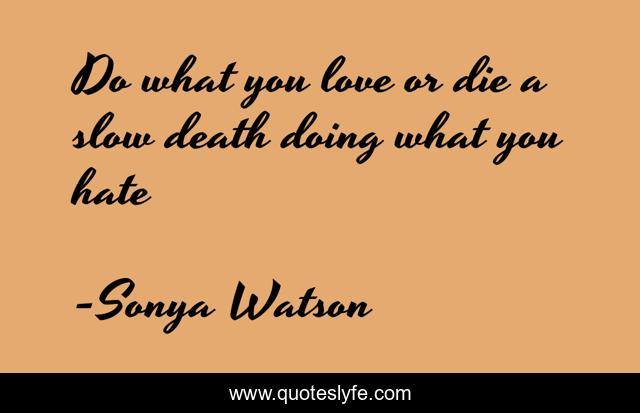 This page presents the quote "Do what you love or die a slow death doing what you hate". Author of this quote is Sonya Watson. This quote is about enthusiasm, inspirational,.
