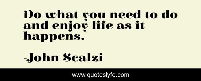 This page presents the quote "Do what you need to do and enjoy life as it happens.". Author of this quote is John Scalzi. This quote is about enjoy, enjoy life,.