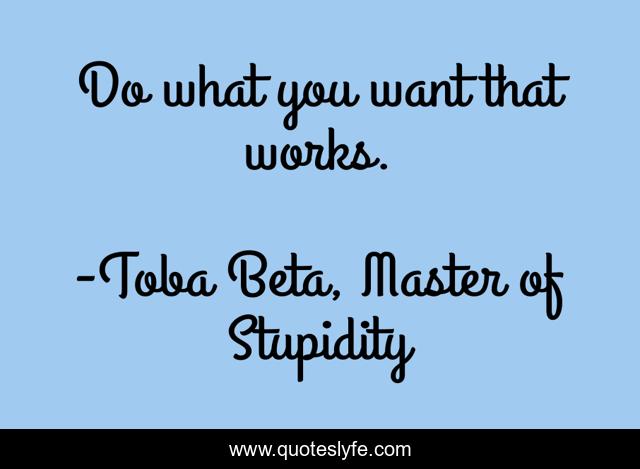 "Toba Beta, Master of Stupidity Quotes." Quoteslyfe.com, 2025. Fri. 05 Dec. 2025. <https://www.quoteslyfe.com/quote/Do-what-you-want-that-works-71871>.