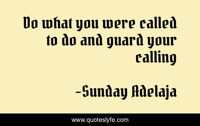 This page presents the quote "Do what you were called to do and guard your calling". Author of this quote is Sunday Adelaja. This quote is about guard, call, calling,.