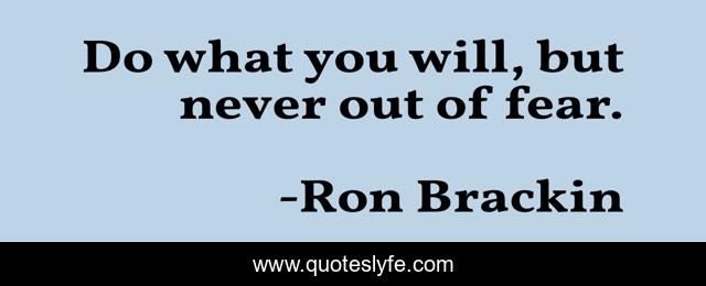 This page presents the quote "Do what you will, but never out of fear.". Author of this quote is Ron Brackin. This quote is about faith, fear, choices,.