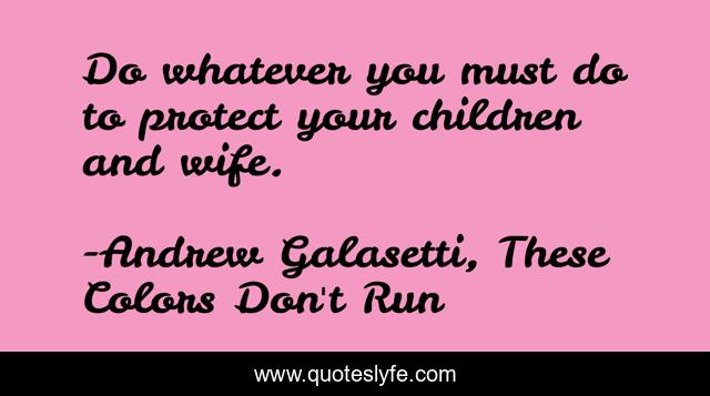 This page presents the quote "Do whatever you must do to protect your children and wife.". Author of this quote is Andrew Galasetti, These Colors Don't Run. This quote is about family, wife, fathers, husbands, fatherhood, children,.