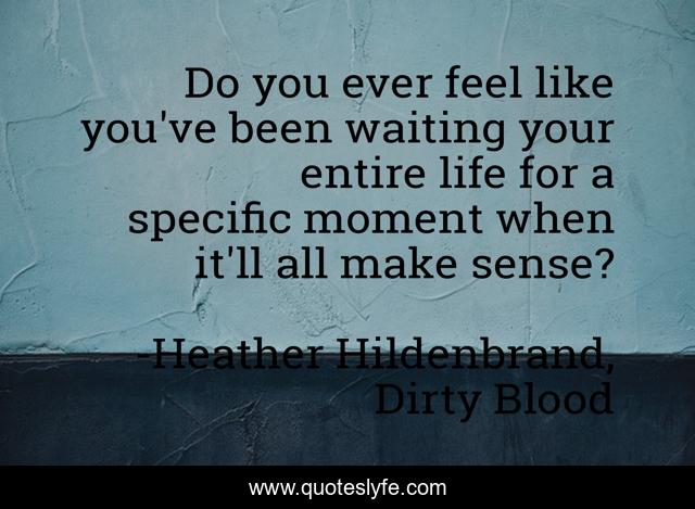 This page presents the quote "Do you ever feel like you've been waiting your entire life for a specific moment when it'll all make sense?". Author of this quote is Heather Hildenbrand, Dirty Blood. This quote is about life-and-living, true,.