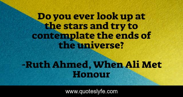 This page presents the quote "Do you ever look up at the stars and try to contemplate the ends of the universe?". Author of this quote is Ruth Ahmed, When Ali Met Honour. This quote is about when-ali-met-honour, science, space, stars, universe, astrophysics, ruth-ahmed,.
