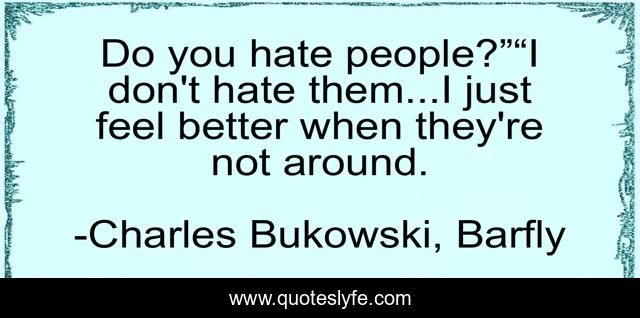 "Charles Bukowski, Barfly Quotes." Quoteslyfe.com, 2025. Mon. 08 Dec. 2025. <https://www.quoteslyfe.com/quote/Do-you-hate-people-I-don-t-55219>.