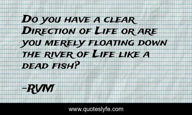 This page presents the quote "Do you have a clear Direction of Life or are you merely floating down the river of Life like a dead fish?". Author of this quote is RVM. This quote is about motivation, inspiration,.