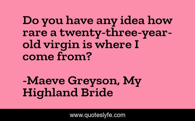 This page presents the quote "Do you have any idea how rare a twenty-three-year-old virgin is where I come from?". Author of this quote is Maeve Greyson, My Highland Bride. This quote is about time-travel, scottish-romance,.