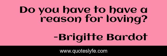 This page presents the quote "Do you have to have a reason for loving?". Author of this quote is Brigitte Bardot. This quote is about reason, loving,.