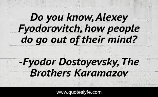 This page presents the quote "Do you know, Alexey Fyodorovitch, how people do go out of their mind?". Author of this quote is Fyodor Dostoyevsky, The Brothers Karamazov. .