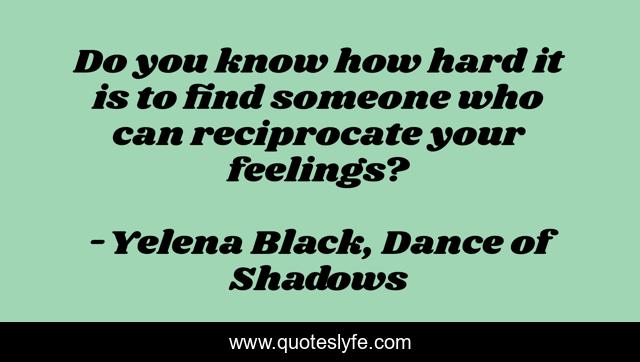 This page presents the quote "Do you know how hard it is to find someone who can reciprocate your feelings?". Author of this quote is Yelena Black, Dance of Shadows. This quote is about love, affection, feelings,.