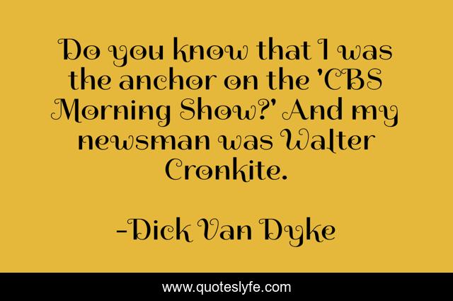 This page presents the quote "Do you know that I was the anchor on the 'CBS Morning Show?' And my newsman was Walter Cronkite.". Author of this quote is Dick Van Dyke. .