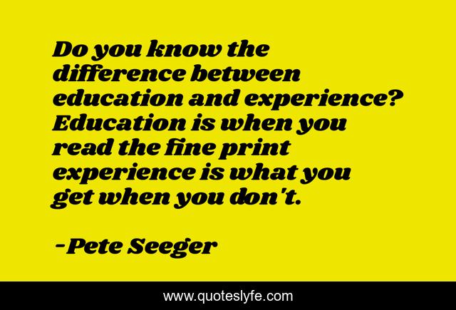 This page presents the quote "Do you know the difference between education and experience? Education is when you read the fine print experience is what you get when you don't.". Author of this quote is Pete Seeger. .