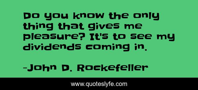 This page presents the quote "Do you know the only thing that gives me pleasure? It's to see my dividends coming in.". Author of this quote is John D. Rockefeller. .