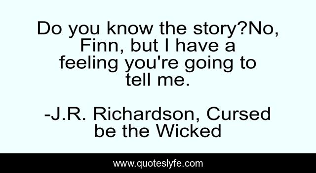 This page presents the quote "Do you know the story?No, Finn, but I have a feeling you're going to tell me.". Author of this quote is J.R. Richardson, Cursed be the Wicked. This quote is about mystery, j-r-richardson, cursed-be-the-wicked, romance, paranormal,.
