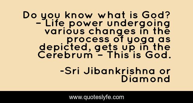 This page presents the quote "Do you know what is God? – Life power undergoing various changes in the process of yoga as depicted, gets up in the Cerebrum – This is God.". Author of this quote is Sri Jibankrishna or Diamond. This quote is about god, yoga, cerebrum,.