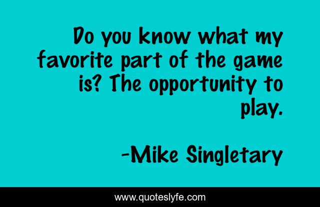 This page presents the quote "Do you know what my favorite part of the game is? The opportunity to play.". Author of this quote is Mike Singletary. .