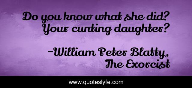 This page presents the quote "Do you know what she did? Your cunting daughter?". Author of this quote is William Peter Blatty, The Exorcist. This quote is about enthusiasm, deep, inspirational,.