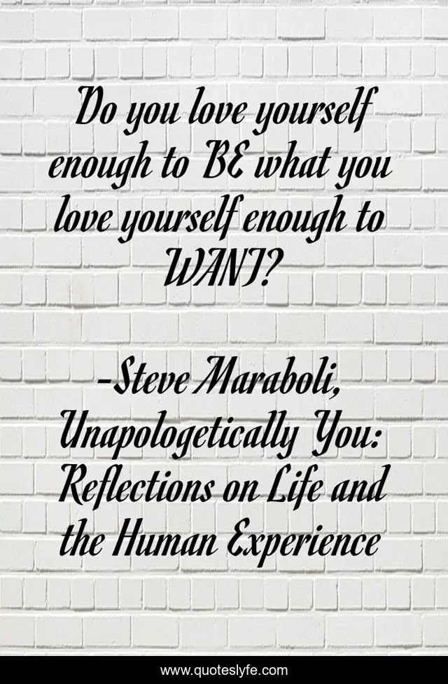 "Steve Maraboli, Unapologetically You: Reflections on Life and the Human Experience Quotes." Quoteslyfe.com, 2025. Sun. 07 Dec. 2025. <https://www.quoteslyfe.com/quote/Do-you-love-yourself-enough-to-BE-5316>.