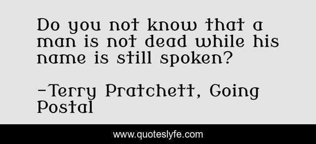 This page presents the quote "Do you not know that a man is not dead while his name is still spoken?". Author of this quote is Terry Pratchett, Going Postal. This quote is about remembrance, immortality, death,.