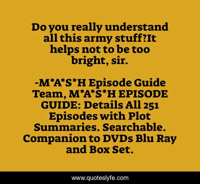 "M*A*S*H Episode Guide Team, M*A*S*H EPISODE GUIDE: Details All 251 Episodes with Plot Summaries. Searchable. Companion to DVDs Blu Ray and Box Set. Quotes." Quoteslyfe.com, 2025. Fri. 05 Dec. 2025. <https://www.quoteslyfe.com/quote/Do-you-really-understand-all-this-army-218242>.
