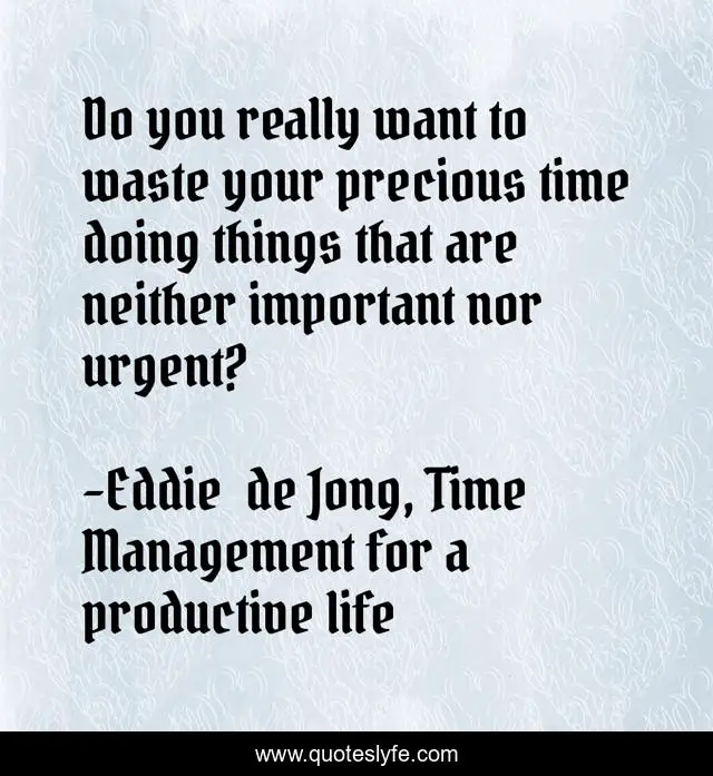 "Eddie de Jong, Time Management for a productive life Quotes." Quoteslyfe.com, 2025. Mon. 08 Dec. 2025. <https://www.quoteslyfe.com/quote/Do-you-really-want-to-waste-your-254496>.