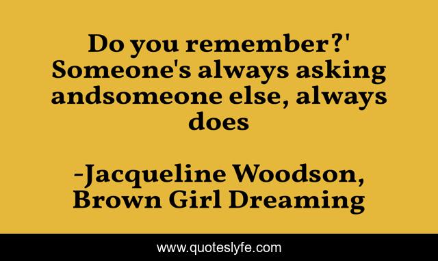 "Jacqueline Woodson, Brown Girl Dreaming Quotes." Quoteslyfe.com, 2025. Fri. 05 Dec. 2025. <https://www.quoteslyfe.com/quote/Do-you-remember-Someone-s-always-asking-164516>.