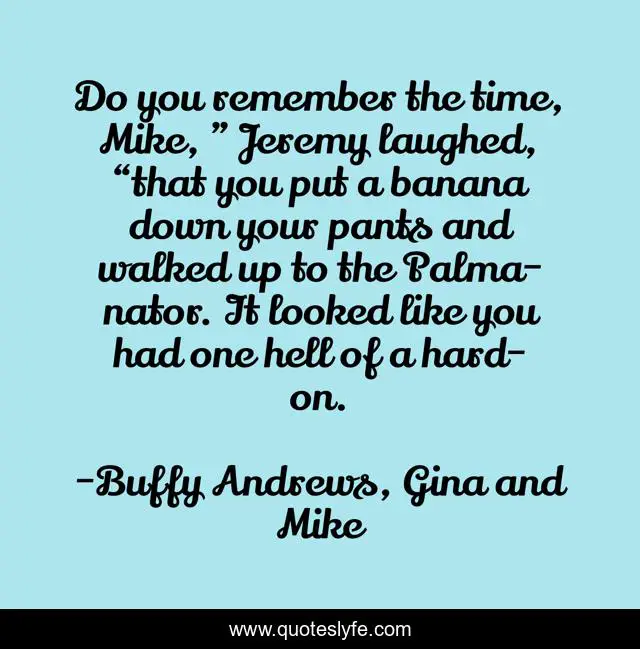 "Buffy Andrews, Gina and Mike Quotes." Quoteslyfe.com, 2025. Fri. 05 Dec. 2025. <https://www.quoteslyfe.com/quote/Do-you-remember-the-time-Mike-Jeremy-151346>.