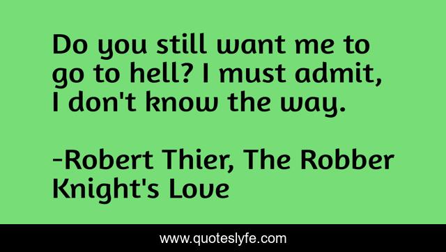 This page presents the quote "Do you still want me to go to hell? I must admit, I don't know the way.". Author of this quote is Robert Thier, The Robber Knight's Love. This quote is about anger, hell, love, humor, affection,.