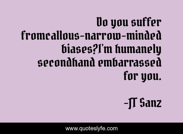 "JT Sanz Quotes." Quoteslyfe.com, 2025. Mon. 08 Dec. 2025. <https://www.quoteslyfe.com/quote/Do-you-suffer-fromcallous-narrow-minded-biases-208494>.
