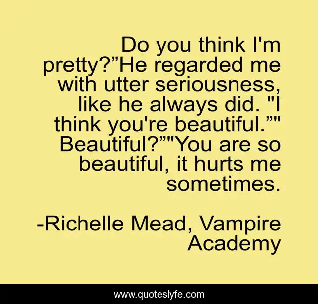 "Richelle Mead, Vampire Academy Quotes." Quoteslyfe.com, 2025. Sat. 06 Dec. 2025. <https://www.quoteslyfe.com/quote/Do-you-think-I-m-pretty-He-165528>.