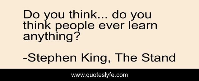This page presents the quote "Do you think... do you think people ever learn anything?". Author of this quote is Stephen King, The Stand. This quote is about the-stand, question, learning, people,.