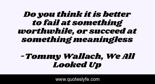 This page presents the quote "Do you think it is better to fail at something worthwhile, or succeed at something meaningless". Author of this quote is Tommy Wallach, We All Looked Up. .