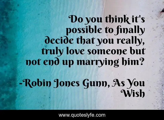This page presents the quote "Do you think it's possible to finally decide that you really, truly love someone but not end up marrying him?". Author of this quote is Robin Jones Gunn, As You Wish. This quote is about love, miller, marriage, christy, as-you-wish, affection,.