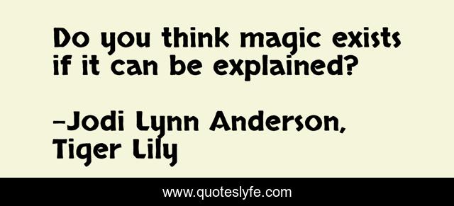 "Jodi Lynn Anderson, Tiger Lily Quotes." Quoteslyfe.com, 2025. Fri. 05 Dec. 2025. <https://www.quoteslyfe.com/quote/Do-you-think-magic-exists-if-it-133914>.