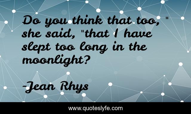 This page presents the quote "Do you think that too, " she said, "that I have slept too long in the moonlight?". Author of this quote is Jean Rhys. This quote is about full-moon, madness, women,.