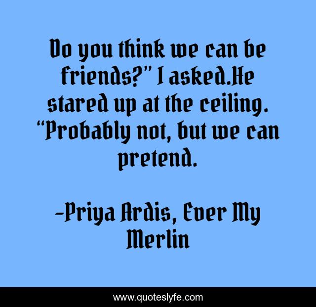 "Priya Ardis, Ever My Merlin Quotes." Quoteslyfe.com, 2025. Mon. 08 Dec. 2025. <https://www.quoteslyfe.com/quote/Do-you-think-we-can-be-friends-1552>.