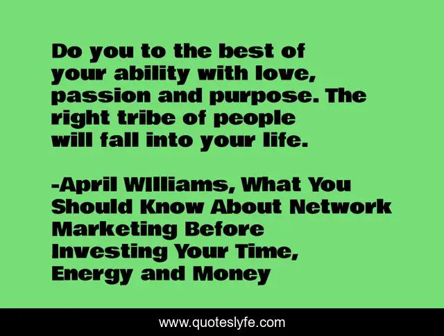 "April WIlliams, What You Should Know About Network Marketing Before Investing Your Time, Energy and Money Quotes." Quoteslyfe.com, 2025. Sat. 06 Dec. 2025. <https://www.quoteslyfe.com/quote/Do-you-to-the-best-of-your-147616>.