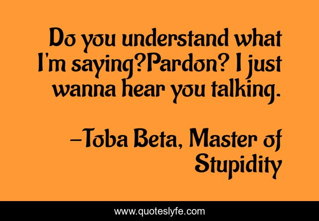 This page presents the quote "Do you understand what I'm saying?Pardon? I just wanna hear you talking.". Author of this quote is Toba Beta, Master of Stupidity. .