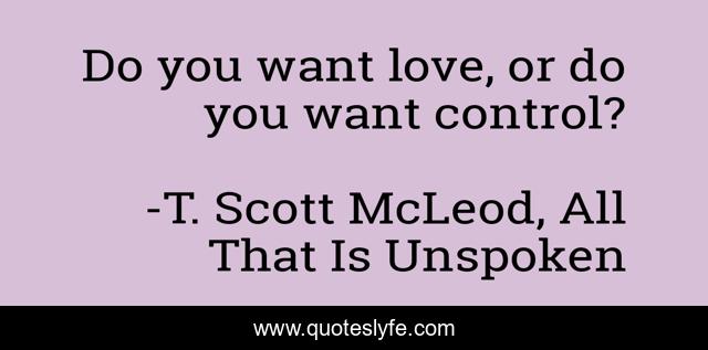 This page presents the quote "Do you want love, or do you want control?". Author of this quote is T. Scott McLeod, All That Is Unspoken. This quote is about true-love, peace, love, acceptance, relationship-struggles, affection,.