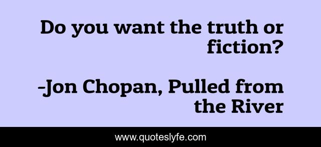 "Jon Chopan, Pulled from the River Quotes." Quoteslyfe.com, 2025. Sat. 06 Dec. 2025. <https://www.quoteslyfe.com/quote/Do-you-want-the-truth-or-fiction-100618>.